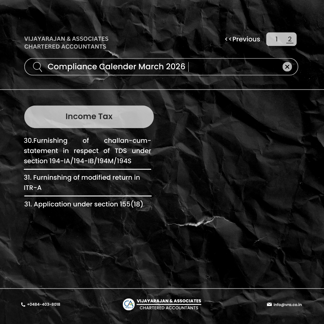 Vijayarajan & Associates - March 2026 Compliance Calendar – Key Tax, GST & Regulatory Deadlines